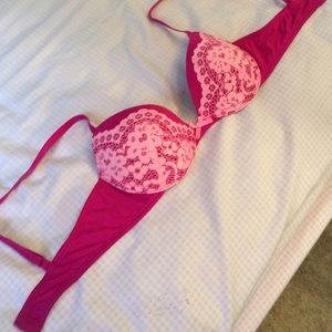 Pink Bra with Lace design, Push Up, will bundle with other bras for a lower price