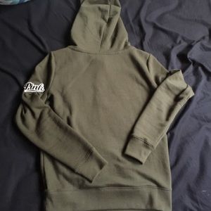 Worn twice, kept in great shape. Olive green color with bright lettering and drawstrings.