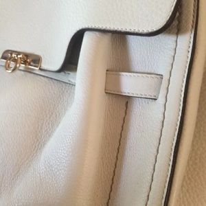This bag is in EXCELLENT CONDITION. It has brown suede on the inside and is very soft Italian leather. The measurements include: About 1 ft. in width. Around 4&1/2 inches in depth. And around eight inches tall. The inside plate still has sticker from manufacturer. Comes with both a short strap and a long detachable across shoulder strap. I have tags, dust bag and instructions for care. Price is negotiable. ❗️LISTED FOR CHEAPER ON MERCARI❗️