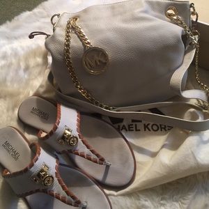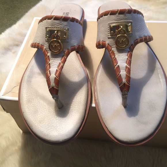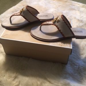 100% authentic cream and brown Michael kors thong sandals . They are the most comfortable sandals in the world . Great condition worn a few time and has bag to match pic of bag is down below in a previous post. accept 🅿️🅿️ as payment unless you cover posh fees