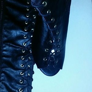 SOLD Size 9, black high high boots. The boots have gold lace holes. Only worn once.