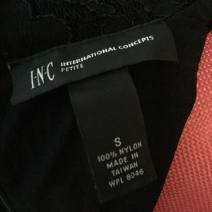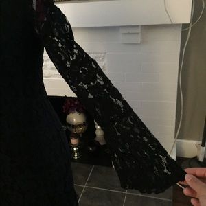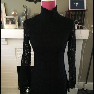 Black lace dress, long bell sleeves, mock turtle neck, zips in back