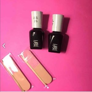 Two top coats, one base coat, one bottle of cleanser, two files and orange sticks. There is nothing wrong with any of this I just keeping getting them when I buy gel stuff. I already have each of these polishes and they work just as good as salon brands. This all for use with an gel nail light. Polish typically retails for $8 each. Ships same or next business day. Polishes retail $8 each. Everything for $8 is on Mercari. Always open to trading!