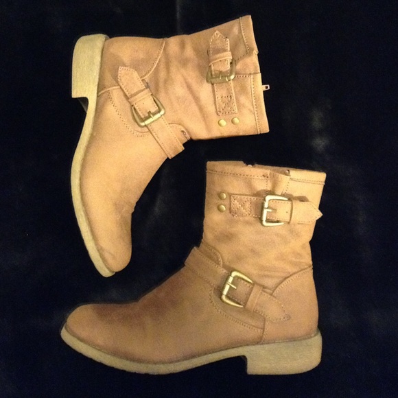 Brown ankle boots in great condition. Nice chic county style with two studs and two buckles on each boot. Love them, but they're just too small. Only worn a handful of times!