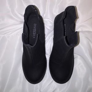 Faux leather booties. Worn once, no defects. 4 inch heel. Comfy to walk in. FINAL SALE