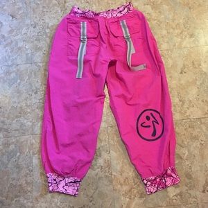 Pink with dark pink & purple accents. Pairs well with the tanks I have listed. Size med. drawstring waist.