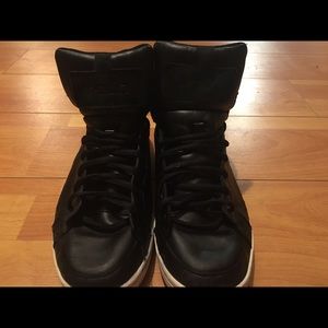 They are leather on the outside ,great for any occasion ๐ค super comfortable ! Have been worn many times . I am open to any offers๐