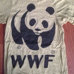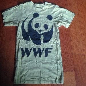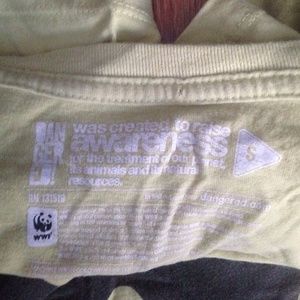 Show your love for endangered animals and the environment with this WWF shirt! This shirt is 100% cotton and looks really cute under a cardigan or with jeans or leggings. The color of the shirts is NOT accurate in the pictures. It is a little brighter than the second picture.