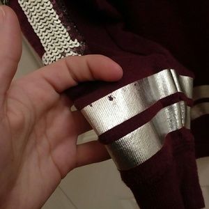Superrr cute vs pink maroon crew size XS with silver sequins on back and on each sleeve although on the right sleeve there is foil faded off or something so my price reflects that flaw also has very light pilling not noticeable This is rare and htf sells for quits a bit will be cheaper on M $45 with $4 shipped I'm open to reasonable offers I'm also willing to trade for the right thing Pink for Pink only thank youu
