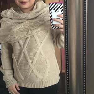 This top can be worn two ways. Pull over cream sweater or wear with the matching scarf. Super chic and comfy. Have had many compliments.