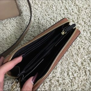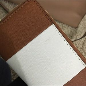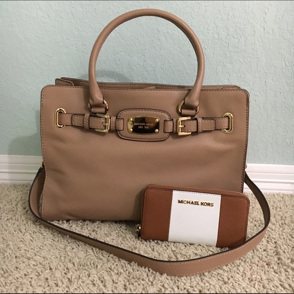 It's a brand new without tags Michael Kors Set. The purse is in pristine condition no stains or scratches. The wristlet however does come with one minor imperfection on the back as shown in picture 4; it's barely noticeable. For more pictures, offers, or anything else please comment.