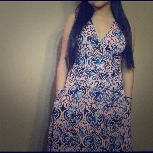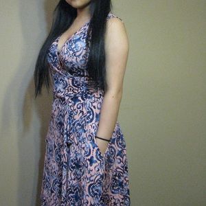 This is super chic! Wrap around sleeveless dress with pockets! It hugs the curves just right 😍😊