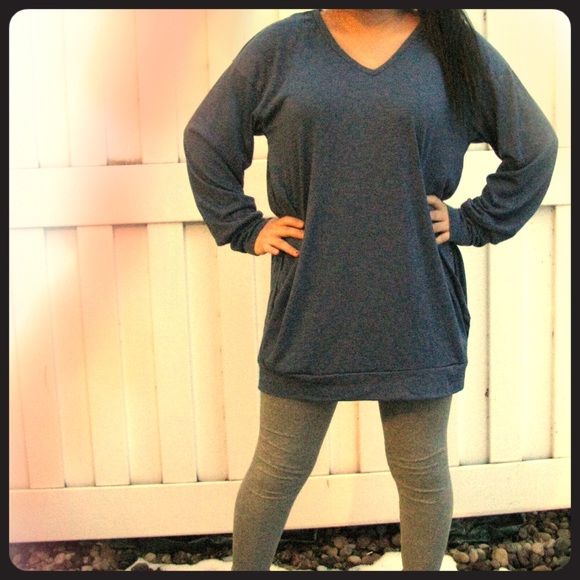 Comfy oversize navy blue top. Tag says XL but fits more of a medium or small. Model in this picture wears a small.