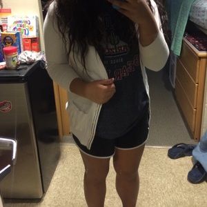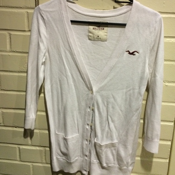 All white, 3/4 sleeve cardigan from Hollister! Only worn a handful of times so I would say it's in 8/10 condition! Size says medium but it fits a little tight!
