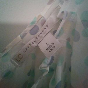Super cute polka dot Top. White with mint, gray, and gold polka dots. Cute tie in the back.