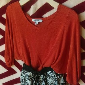 Forever21 Burnt Orange V-neck Flowy Shirt- MEDIUM