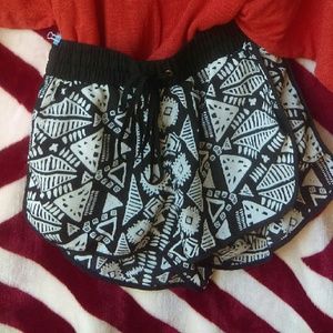 Black & White Tribal Drawstring Shorts w/Gold Decals -SMALL