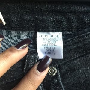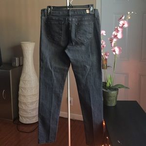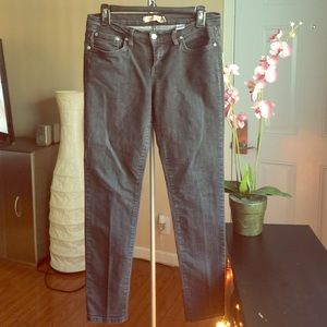 Dark gray/faded black color. 80% cotton 16% polyester 4% spandex. 29" inseam. In good condition.
