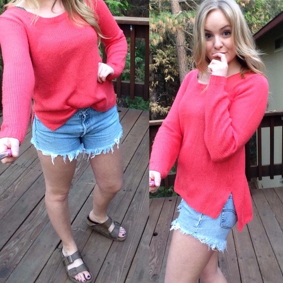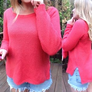 Coral-pink high low sweater. Amazing condition and comfortably soft! Medium