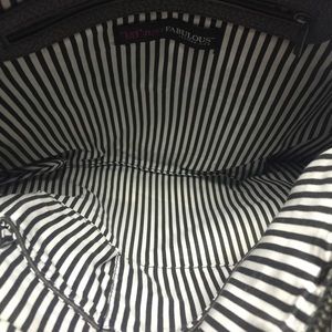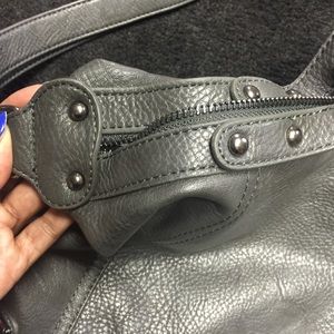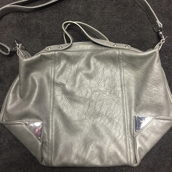 Grey Justfab handbag with gunmetal colored hardware. In great condition.