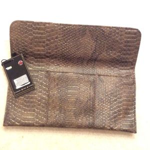 NWT - vegan snakeskin leather clutch. Never been used! Will accessorize any outfit beautifully!