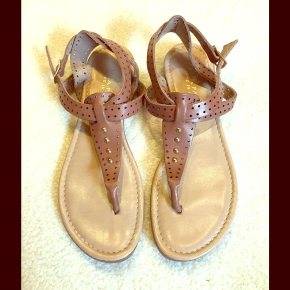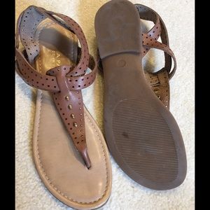 Mila Paoli Soft Leather Thong Sandals with nice perforated detailing. Made in Italy. Gently worn.