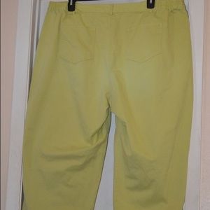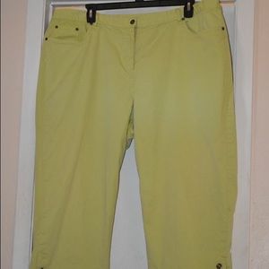 Totally cute lime green Capri pants. One button missing on bottom right pant leg... Does not affect wearability.
