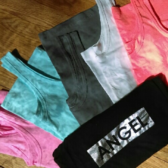 2 ARE USED- THE FAR LEFT PINK & THE BLACK "ANGEL" TANK HAVE BEEN WORN ONCE AND WASHED ONCE.