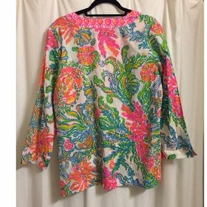 Lilly Pulitzer top. Size XL. Never worn, new, but no tags. Could be a tunic or swimsuit cover up. Light and perfect for summer. Long sleeves. Runs a bit small, fits more like L/XL. Bright colors.