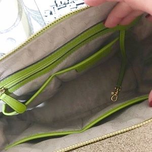 Spring Limited Edition Michael Kors medium-sized Luxe Saffiano Satchel Tote with signature detailing, has pockets to keep your essentials organized, as well as a zip compartment and convenient key holder inside.