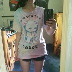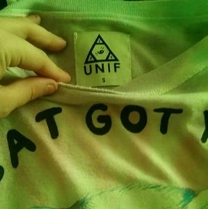 SOLD Rare cat got your bong tee by unif! I don't give this shirt enough love so it needs a new home! Price is negotiable. Only flaw is the blue stain (picture 3) that's not super noticeable when it's on. Would also swap for other unif! (Would prefer to sell through d e p o p or m e r c