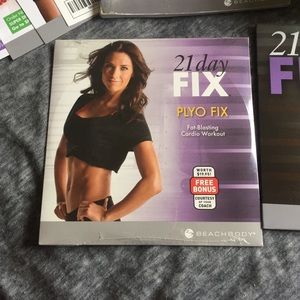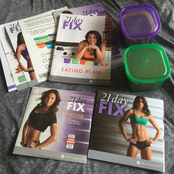 New! Includes: 21 Day Fix DVD, 21 Day Fix Plyo Fix DVD, 21 Day Fix Eating Plan Booklet, Portioning containers (out of packaging, never used), all instructions and container labels. Great deal! Get it while you can! Shipping tonight!