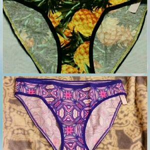 1st & 2nd pic are both Low-rise bikinis, 3rd pic are both regular bikinis and last pic is a low-rise hip hugger. All Medium Size :-)