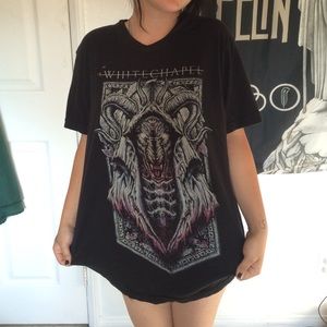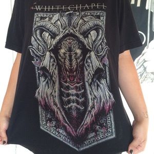 Badass Whitechapel death metal band merch tee. Some bleach stains shown in last pick but it makes it look pretty cool in my opinion. Other than that, perfect condition. Model is 5'1 for reference.