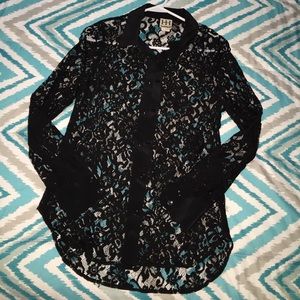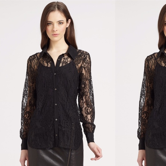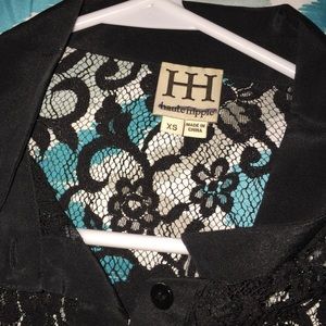 Brand new never worn haute hippie black lace button up shirt black line through label to prevent store returns size xs original price $285