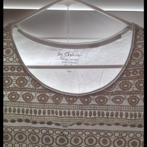 ---Brand: chico's--- size: xsmall/ small (tag says size 0) --- lightly worn--- smoke and pet free home--- 53% cotton--- 47% model exclusive to decoration--- will iron before shipping--- MAKE AN OFFER!!!