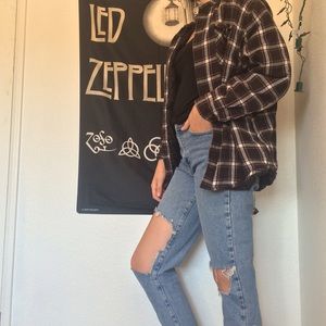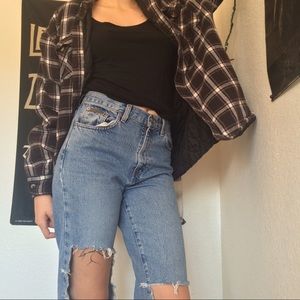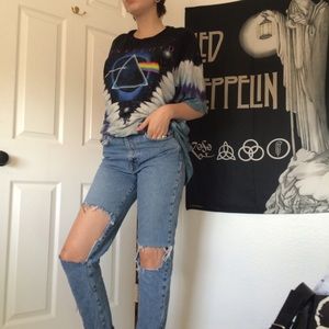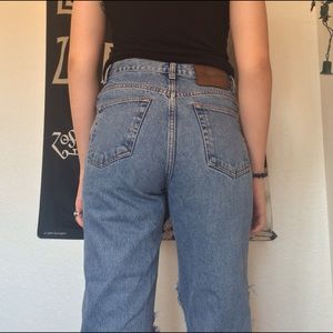 CALVIN KLEIN! Vintage high waisted mom jeans! Super cute and the rips make them look super grungy if that's what you're into!! I got them with the rips but they became bigger overtime. They're still in perfect condition. Model is 5'9