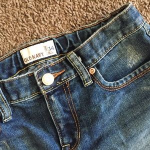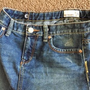 Old navy skirt with distress look it . adjustable button on the side for a good fit ๐ป great for summer. Size 14 little girls. Used in good condition. SOLD