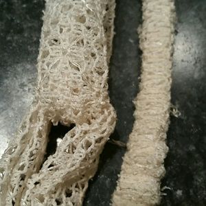 Off white and sequins headband. Stretches around the back. Super comfy.