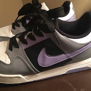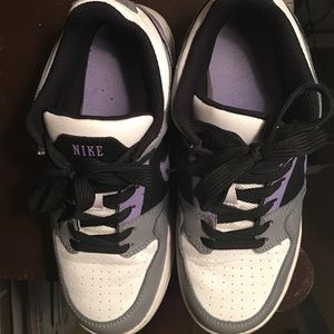 Purple and grey Nikes, only warn few times. Perfect condition. I'm usually a women's 6.5 but I bought these as a child's 5y and the Nike outlet. Loved them for a hip hop class but no longer taking. Need to sell✌🏼️