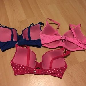 Hiii @evelynsxn !! I would love to keep the bras as a bundle because they are all the same size and style. I would be willing to accept a reasonable offer on the bundle ☺️ If the bundle does not sell soon, I would be willing to break up the bundle and sell you the blue one! If I decide to do that, I would tag you in a comment when I make a post for the blue bra 💙