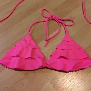 Gently worn Victoria's Secret bikini with ruffle triangle top and string bottom. Top and bottom are both size small! ๐๐