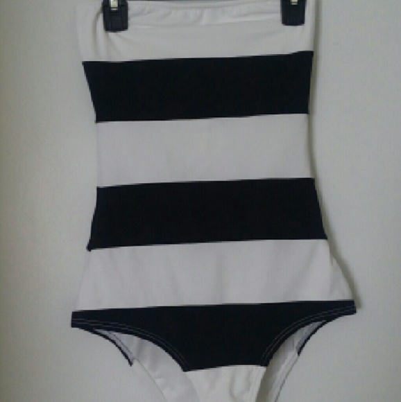This cute swimsuit can be worn strapless or with staps. It is new with the tag.