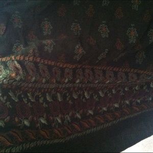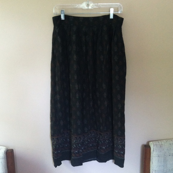 Love the pattern on this floor length skirt, (depending on your size it can be high waisted stopping a few inches above the ankle) the waistband is stretchy - material is rayon - no size but could fit small to medium - brand is Sag Harbor Petite - using Urban for exposure ☺️