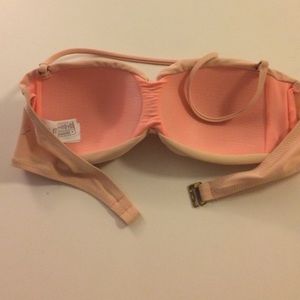Can be worn with or without straps. Size medium with clasp in back. A few black marks on one side as shown in picture but other than that in good condition. Willing to include for free with the purchase of another item from my closet!