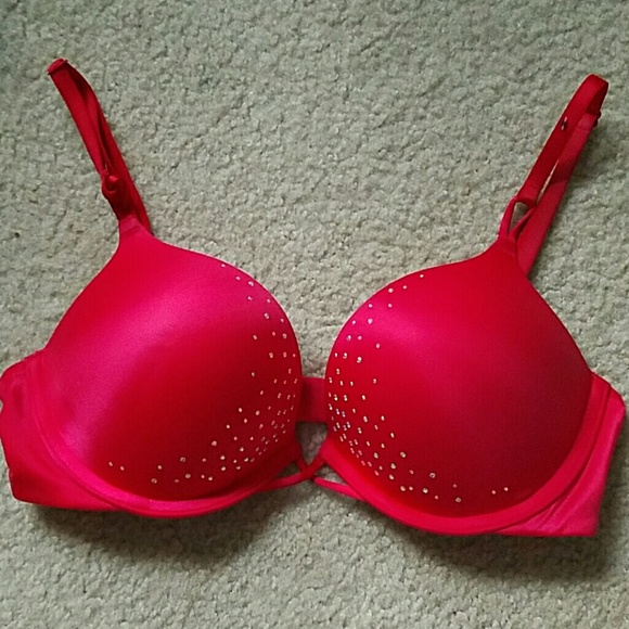 Beautiful extremely padded Victoria's Secret bra. Never been worn. Got as a gift but it is much too padded for my likings. Makes your girls look great! Rhinestones and criss-cross details make this bra amazingly stunning. ❤ Including some samples of Perfectly Posh which is a personal care brand that my mom sells for! 😊