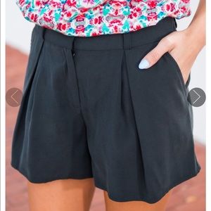 Pleated front, no stretch in material. Front and back pockets. Brand new with tags. NEVER been worn.