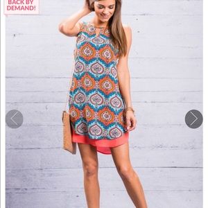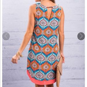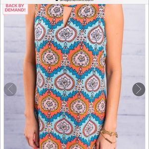 Brand new with tags. NEVER BEEN WORN. material has no amount of stretch. Slip over head to put in.
