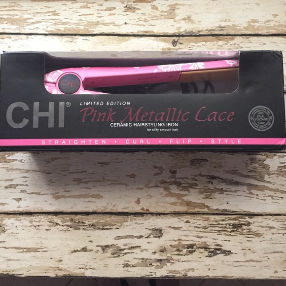 New in the box, Limited Edition CHI, pink metallic lace, ceramic hairstyling iron. I got it and didn't like it, been in the box ever since! New clean condition!!