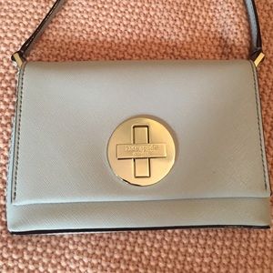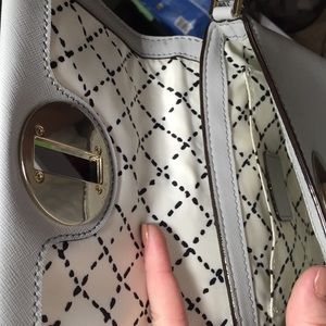 light grey Kate spade crossbody with silver accents. in great condition. minimal signs of wear. pretty much all wear is shown in the pictures! can go cheaper on Ⓜ️ with free shipping